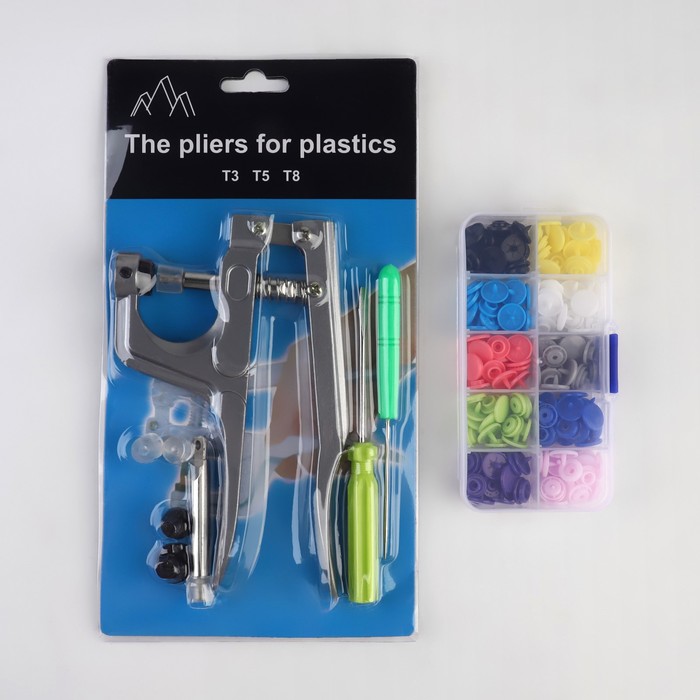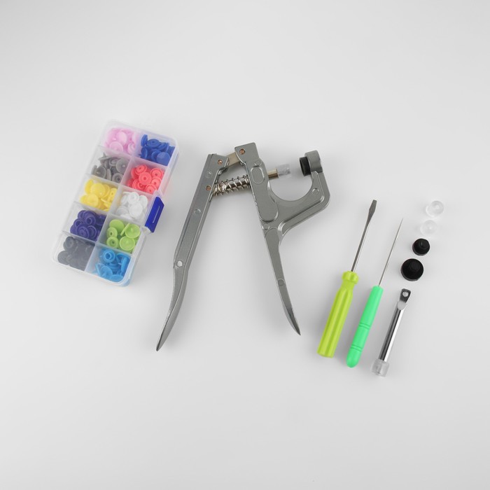 Набор для установки пластиковых кнопок: кнопки, d=12 мм, 50 шт., щипцы, шило, отвёртка, в органайзере