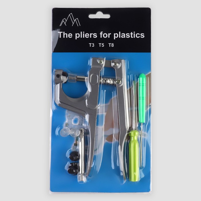 Набор для установки пластиковых кнопок: кнопки, d=12 мм, 50 шт., щипцы, шило, отвёртка, в органайзере — Характеристики