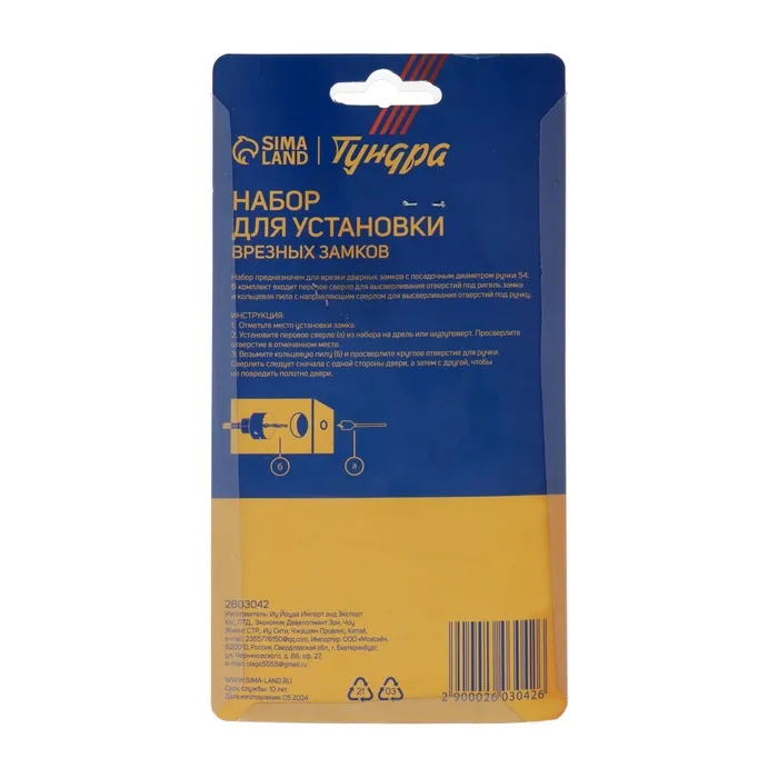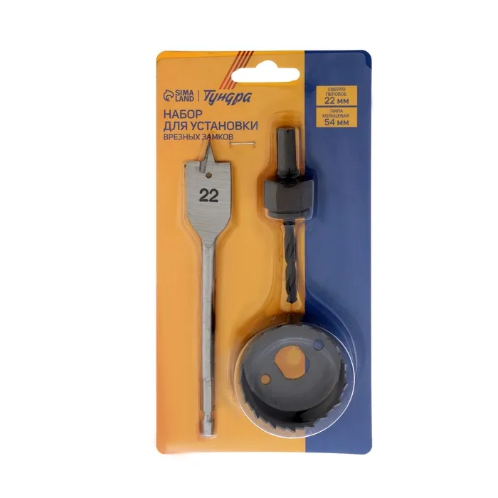Набор для установки врезных замков ТУНДРА, сверло перовое 22 мм, пила кольцевая 54 мм — Характеристики