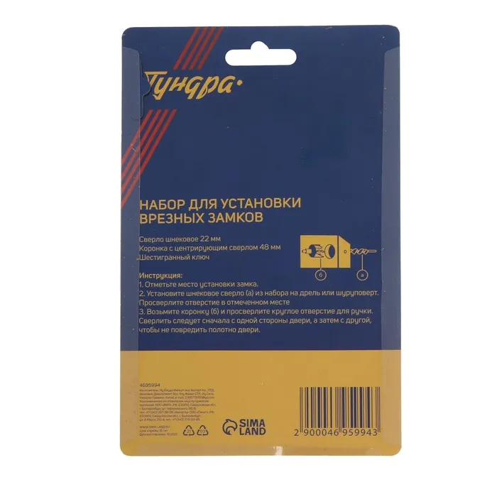 Набор для установки врезных замков ТУНДРА, сверло шнековое 22 мм, коронка 48 мм — Характеристики