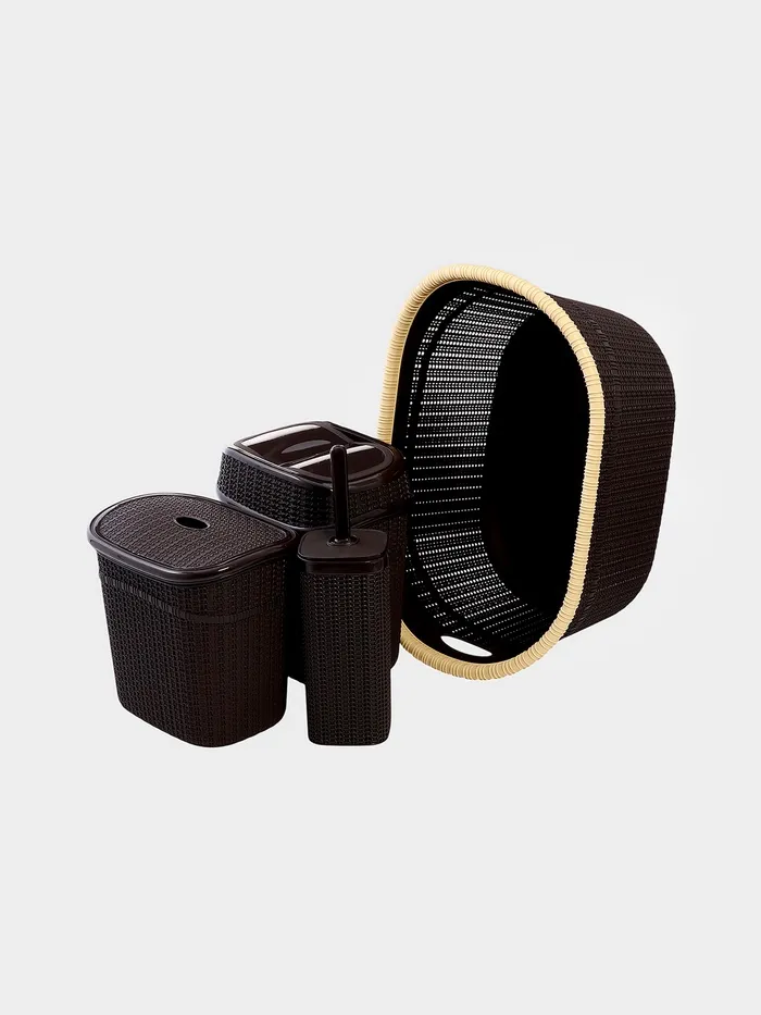 Готовый набор для ванной помогает создать организованное пространство без лишних усилий. Корзины обеспечивают удобное хранение аксессуаров, ведро для мусора поддерживает чистоту, а ёршик остаётся функциональным и незаметным благодаря продуманной конструкции. Этот комплект станет не только функциональным решением, но и элегантным акцентом в оформлении ванной комнаты.