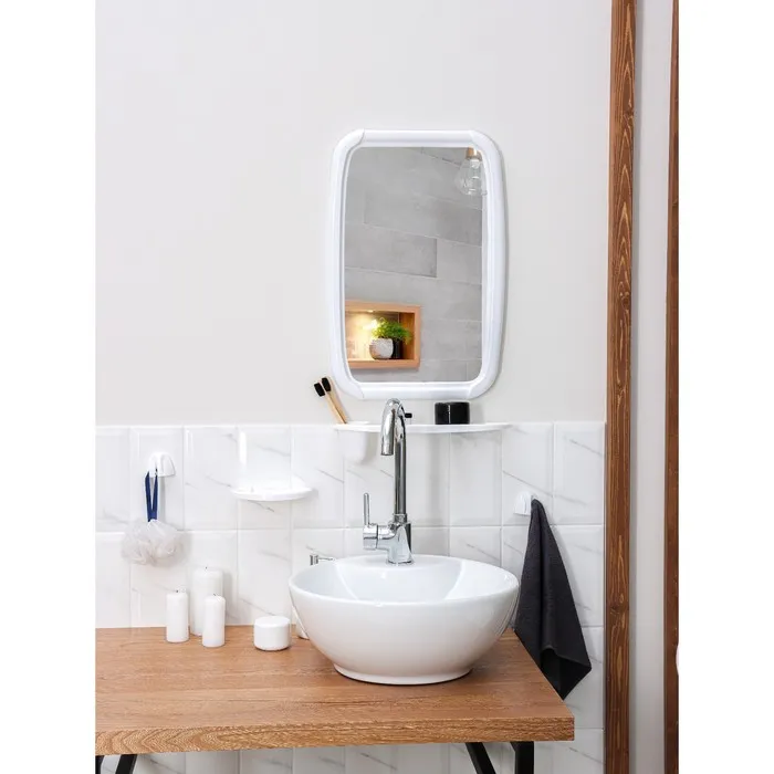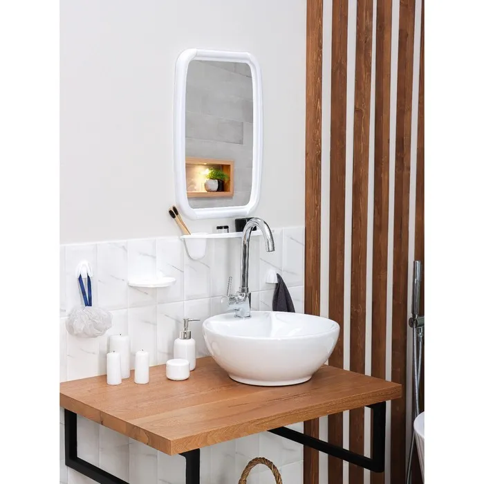 Набор для ванной комнаты включает в себя все необходимое, чтоб каждый день радовать вас удобством и качеством. Расцветка идеально впишется в уже существующий интерьер, а интересная форма зеркала будет привлекать внимание. Входящие в комплект дюбеля и шурупы позволят надежно закрепить все детали там, где вам будет комфортней.