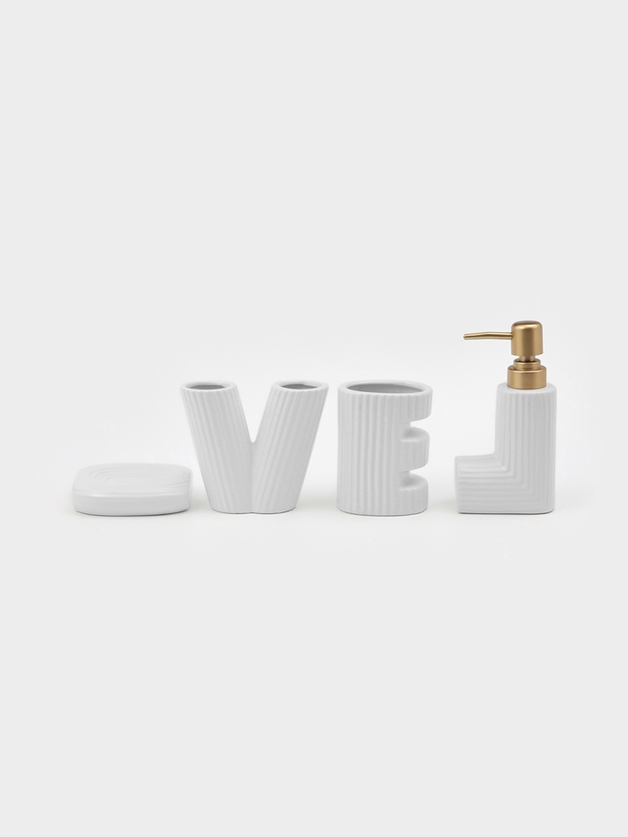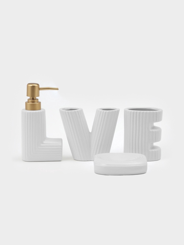Набор для ванной Love, 4 предмета, дозатор для мыла, 2 стакана, мыльница, 200 мл, керамика, белый — Характеристики