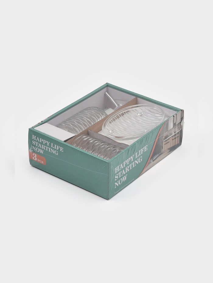 Набор для ванной «Перелив» — три стеклянных предмета, которые вносят ясность в утренний и вечерний ритуалы. Прозрачный однотонный дизайн без рисунков подчеркивает чистоту форм и делает акцент на содержимом, а не на упаковке. Дозатор для мыла, стакан и мыльница собраны в единую систему: они не конкурируют за внимание, но вместе создают ощущение упорядоченного пространства.