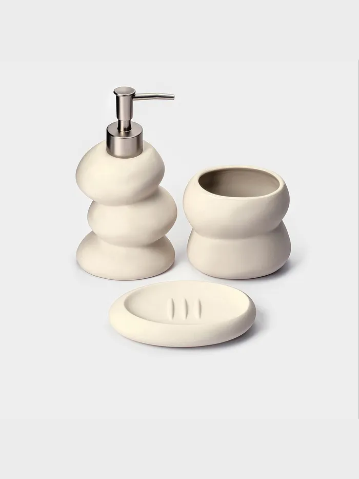 Комплект из трёх предметов сочетает в себе практичность и элегантность. Керамика, как материал, придаёт изделиям прочность и лёгкость в уходе. Набор не только организует пространство, но и добавляет ему стиля, делая ежедневные ритуалы более приятными. Это решение для тех, кто ценит функциональность и гармонию в деталях.