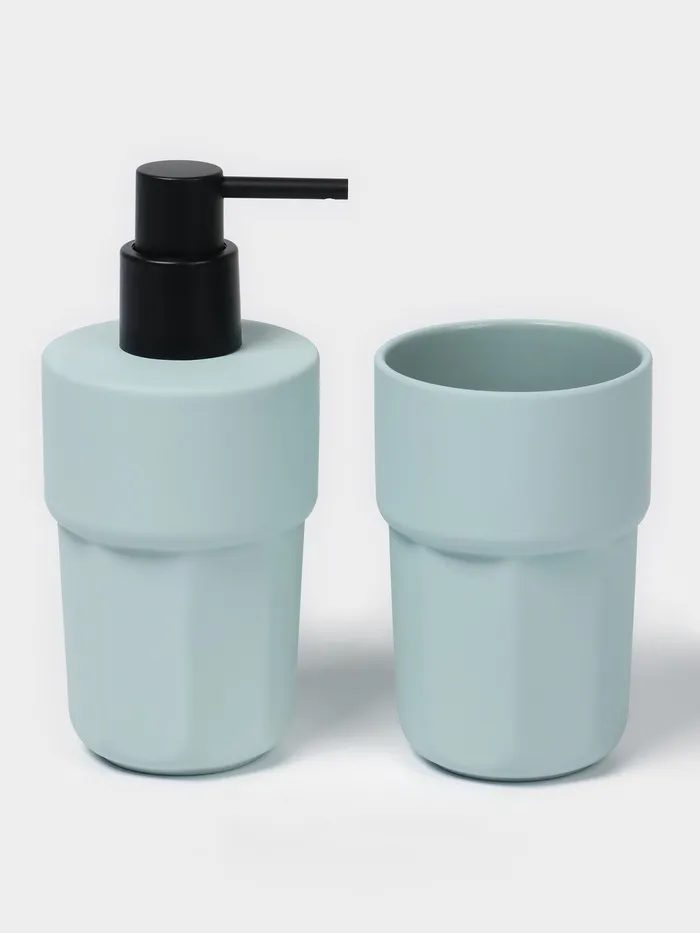 - Практичность: дозатор для мыла обеспечивает удобство использования, а мыльница и стакан поддерживают порядок.