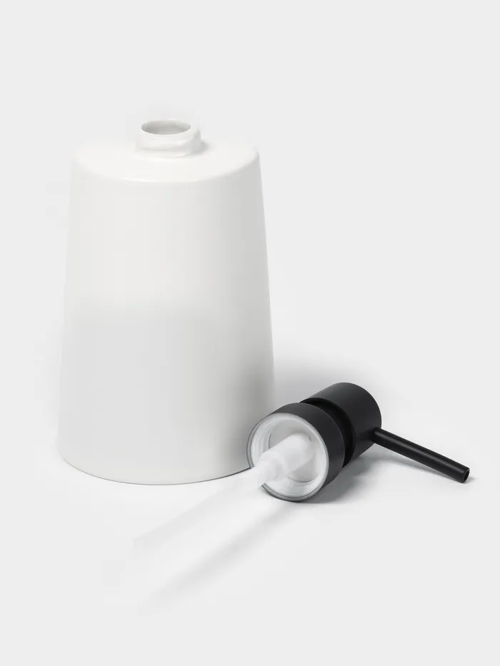 Керамический комплект сочетает в себе практичность и элегантность. Белый цвет визуально расширяет пространство, создавая ощущение чистоты и свежести. Набор не только организует пространство, но и добавляет интерьеру завершённость, делая его уютным и гармоничным.