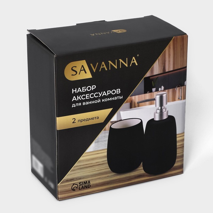 Набор для ванной SAVANNA Soft, 2 предмета (мыльница, стакан), цвет чёрный