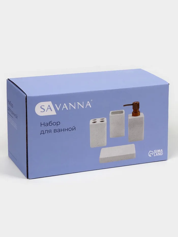 Набор для ванной SAVANNA Tidy, 4 предмета, мыльница, дозатор для мыла, 2 стакана — Характеристики