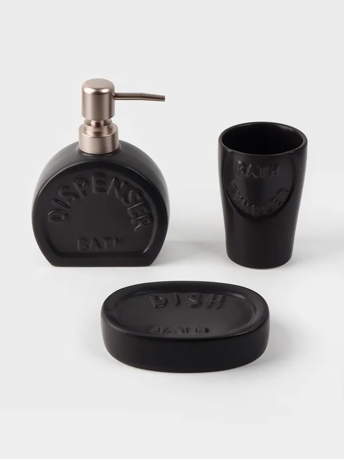 Набор аксессуаров организует пространство и станет стильным украшением Вашей ванной комнаты. За счет сдержанного дизайна данный керамический набор в ванную подойдет к любому дизайну ванной комнаты. Набор состоит из 3 предметов: дозатор, мыльница, стакан.