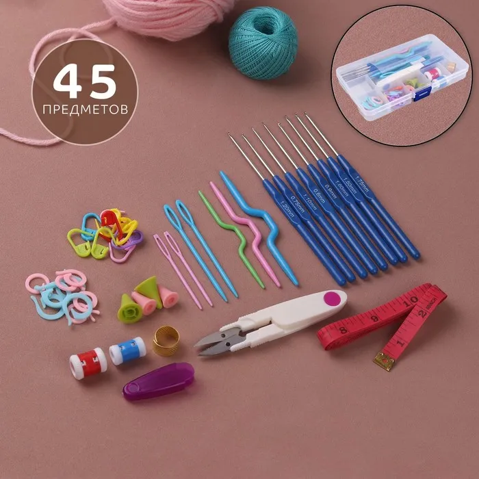 Набор для вязания, 45 предметов, в футляре — Характеристики