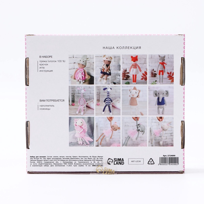 размер готовой игрушки около 21 смготовое изделие станет стильным украшением для вашего доманабор упакован в красивую коробку, он может стать отличным подарком для ребенка и взрослоговы сможете собрать целую коллекцию кукол и игрушек АРТ УзорРазвивайте навыки вязания крючком и радуйте близких оригинальными подарками ручной работы.