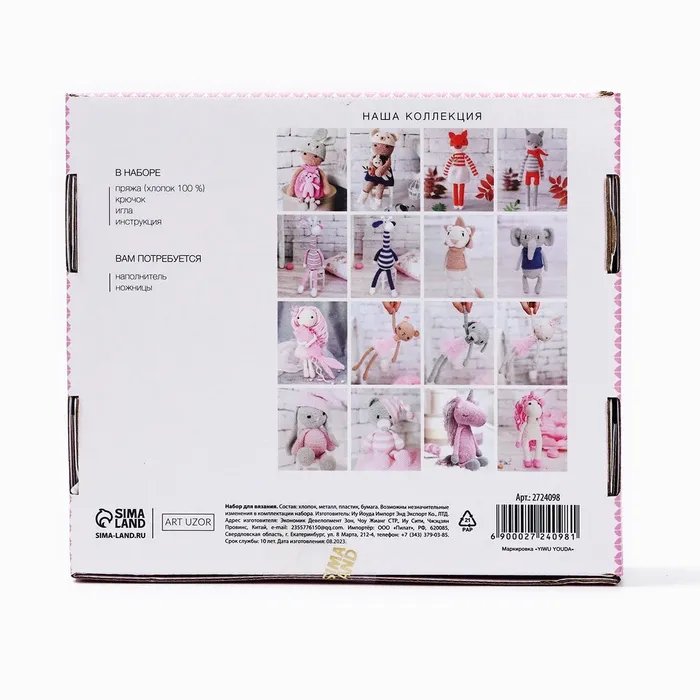 размер готовой игрушки около 41 смготовое изделие станет стильным украшением для вашего доманабор упакован в красивую коробку, он может стать отличным подарком для ребенка и взрослоговы сможете собрать целую коллекцию кукол и игрушек АРТ УзорРазвивайте навыки вязания крючком и радуйте близких оригинальными подарками ручной работы.
