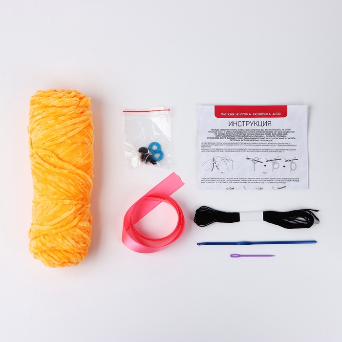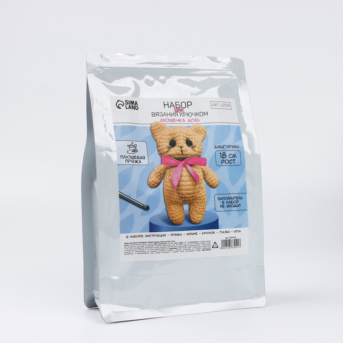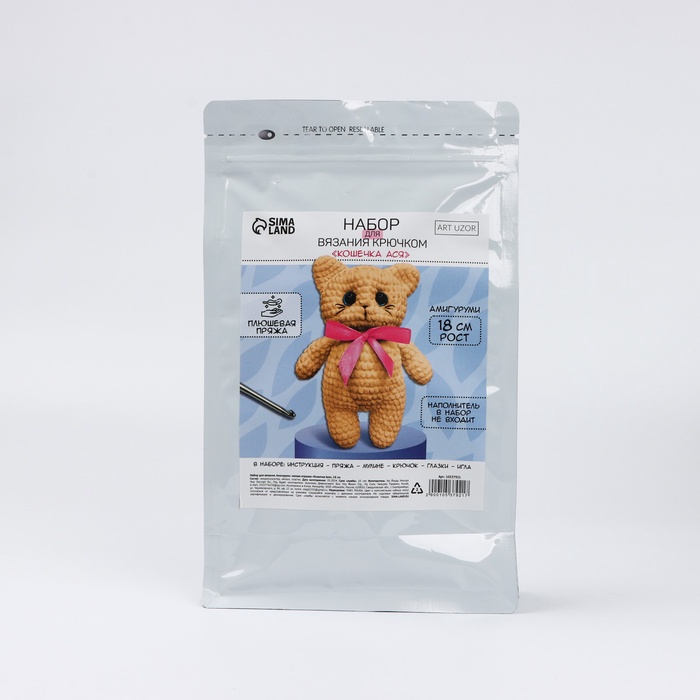 Набор для вязания крючком. Амигуруми: мягкая игрушка своими руками «Кошечка Ася», 18 см — Характеристики