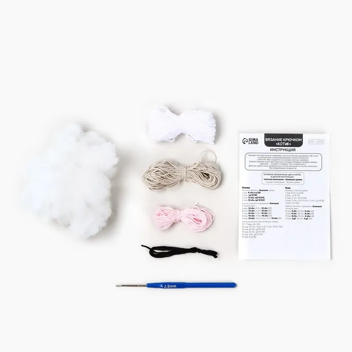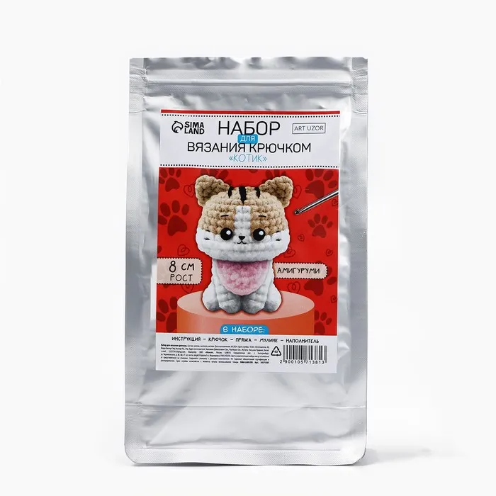 Набор для вязания крючком. Амигуруми: мягкая игрушка своими руками «Котик», 8 см — Характеристики