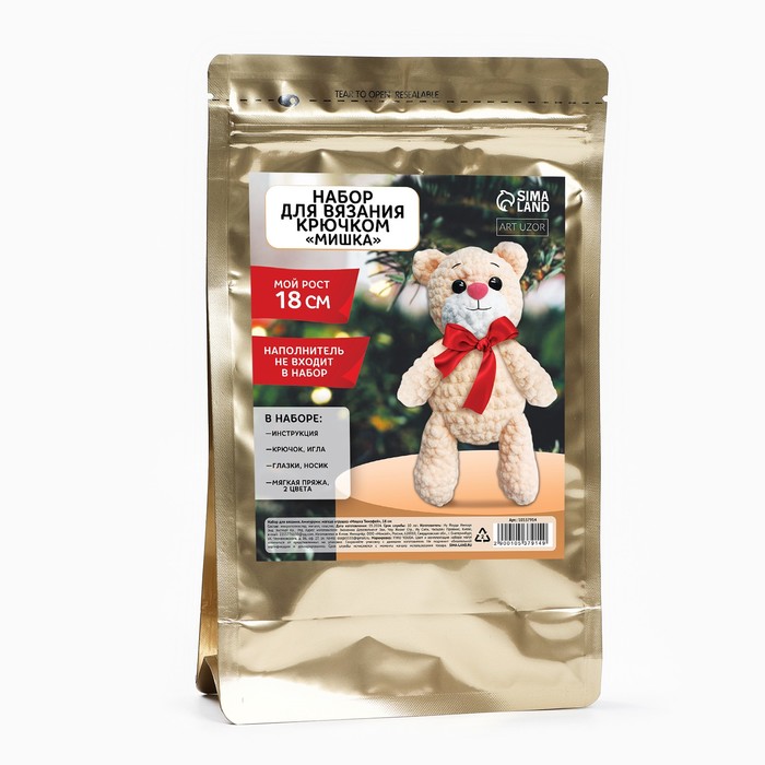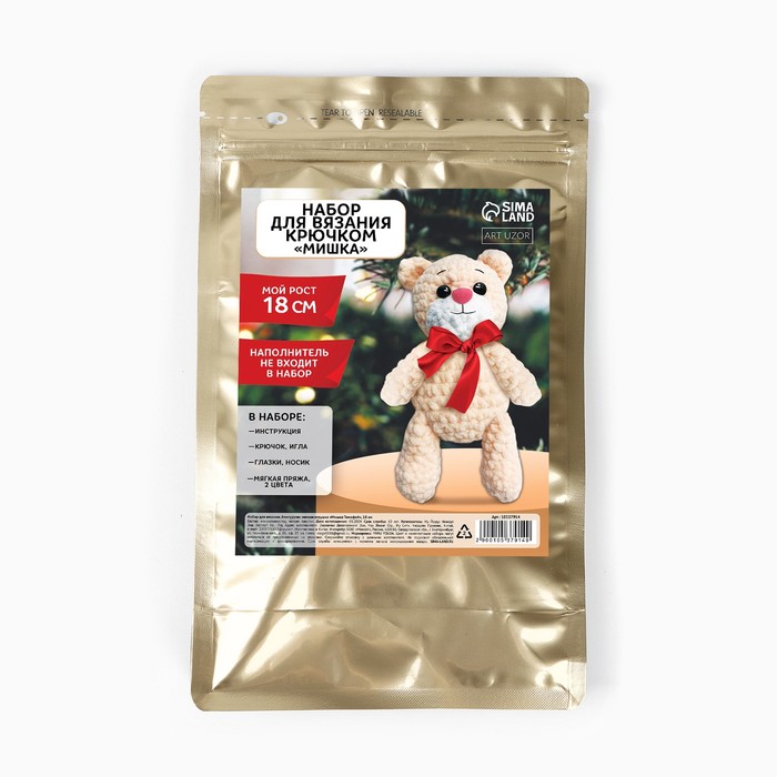 Набор для вязания крючком. Амигуруми: мягкая игрушка своими руками «Мишка Тимофей», 18 см — Характеристики