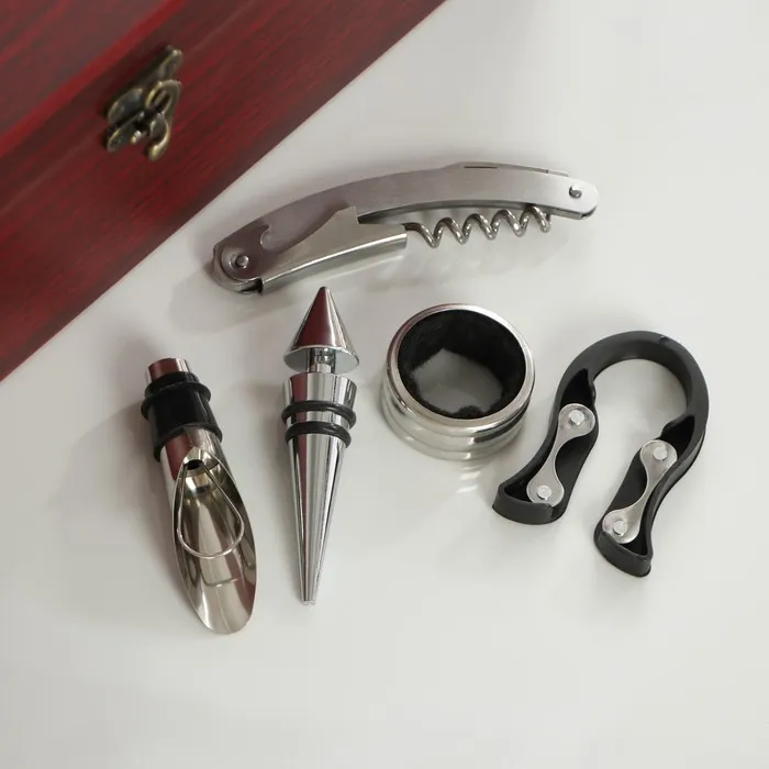 Набор для вина Доляна, 6 предметов: кейс для бутылки, каплеуловитель, штопор, пробка, кольцо, нож для фольги — Характеристики