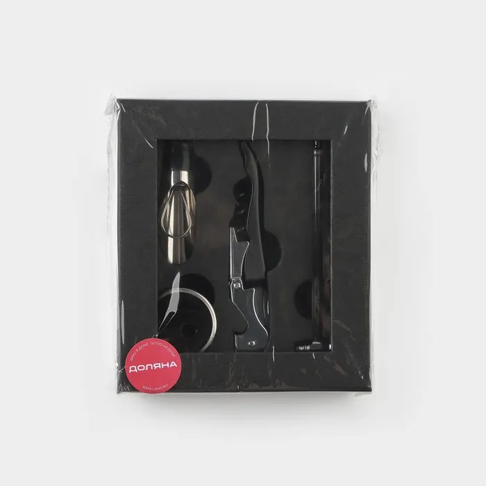 Набор для вина Доляна «Бургундия», 4 предмета: каплеуловитель, штопор, кольцо, термометр — Характеристики
