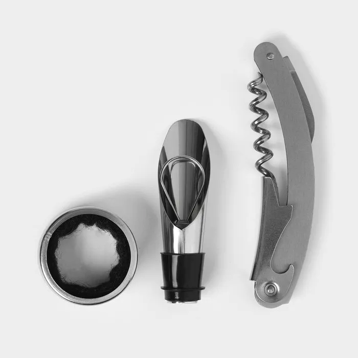 Набор для вина Доляна «Бутылка», 3 предмета: штопор, воронка, кольцо — Характеристики
