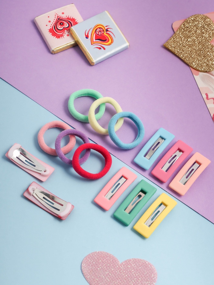 Разные цвета позволяют экспериментировать с образами каждый день. Материалы – металл, пластик и текстиль – обеспечивают надёжность и комфорт при использовании. Набор универсален и подойдёт для любого типа волос, а его элементы легко сочетаются между собой.
