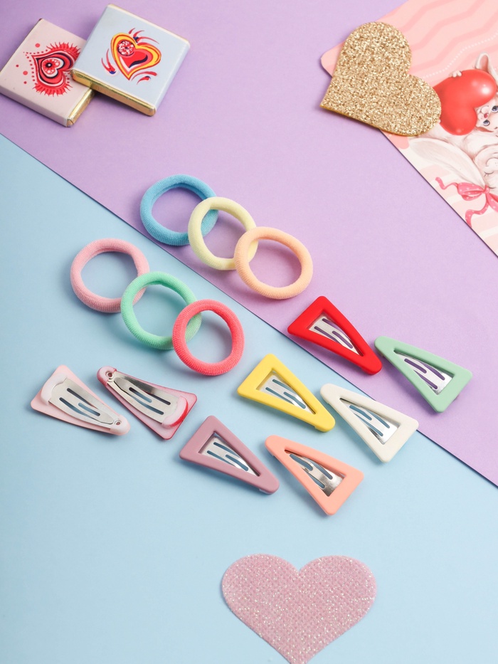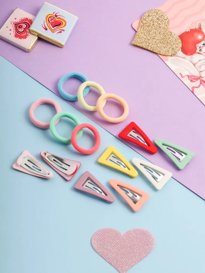 Набор для волос: 6 резинок и 8 невидимок, разноцветные – это универсальное решение для девочек, которые любят экспериментировать с прическами и добавлять яркие акценты в свой образ.