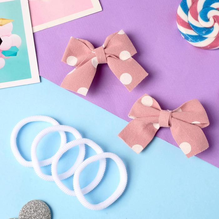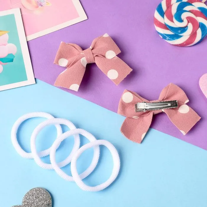 Создай яркий и модный образ для маленькой принцессы! Набор аксессуаров для волос в белый горох в розовом исполнении станет стильным дополнением к гардеробу любой девочки. Набор выполнен из текстиля и металла, что делает аксессуары долговечными и привлекательными.