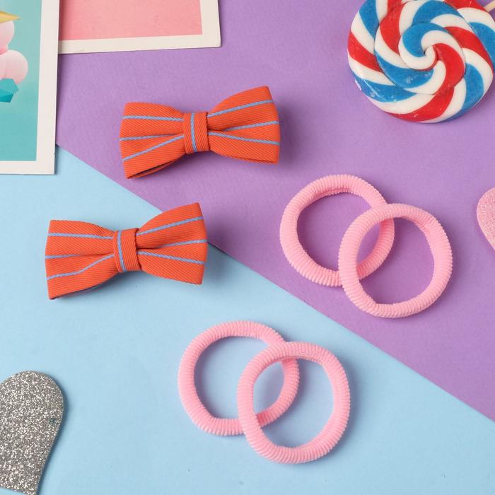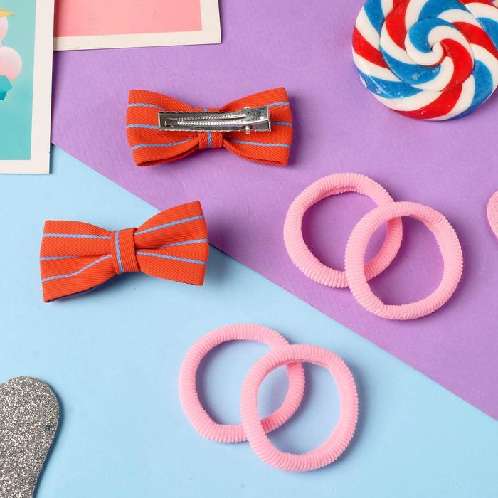Набор для волос "Аннет" (4 резинки, 2 зажима) строгие полосы, 5,5х3,5 см, красно-розовый