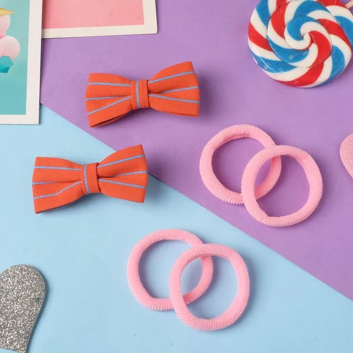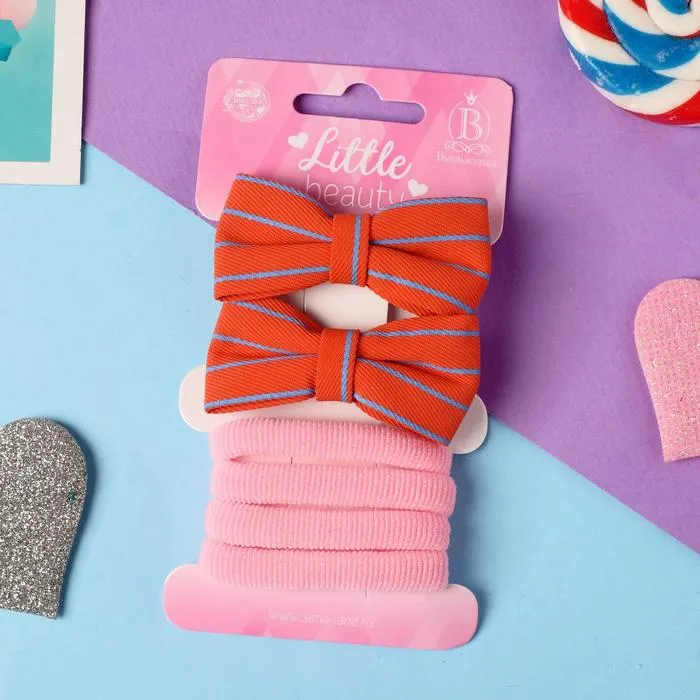Набор для волос "Аннет" (4 резинки, 2 зажима) строгие полосы, 5,5х3,5 см, красно-розовый — Характеристики
