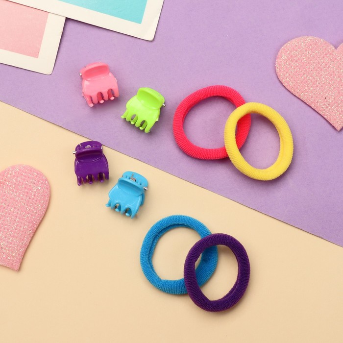 Набор для волос «Фиалка»: 4 краба, 4 резинки, бантик, розово-фиолетовый