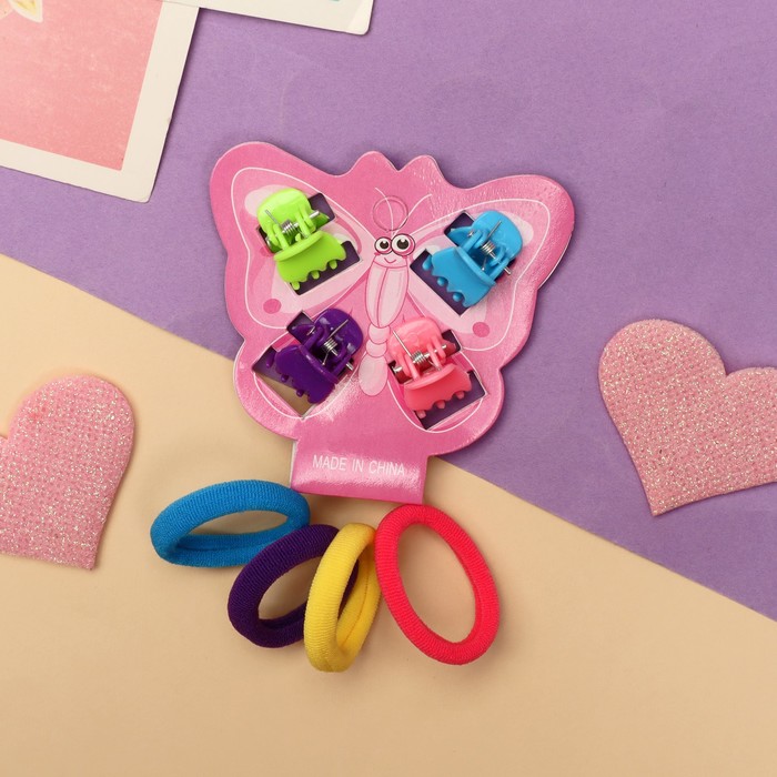 Набор для волос «Бабочка», 4 крабика, 4 резинки, яркий глянец