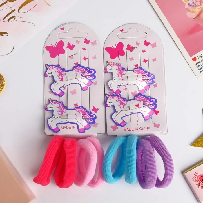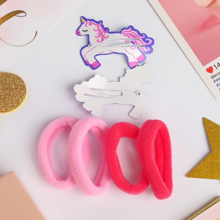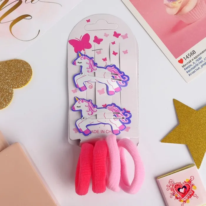 Набор для волос "Беверли" ( 4 резинки, 2 невидимки) единороги 5 см, микс — Характеристики