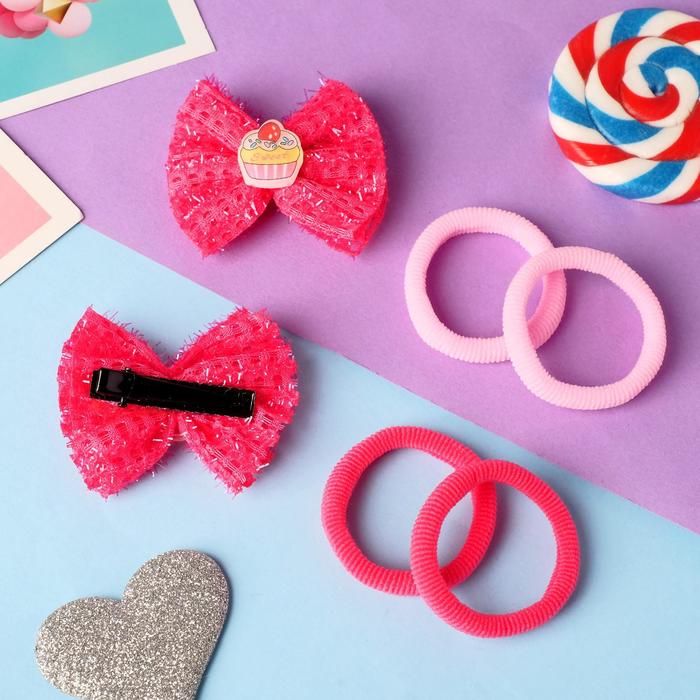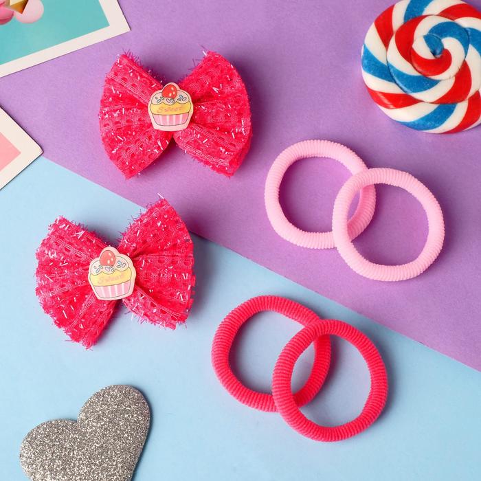 Набор для волос "Деви" (4 резинки, 2 зажима) кружево пироженки, 5,5х4,5 см, розовый