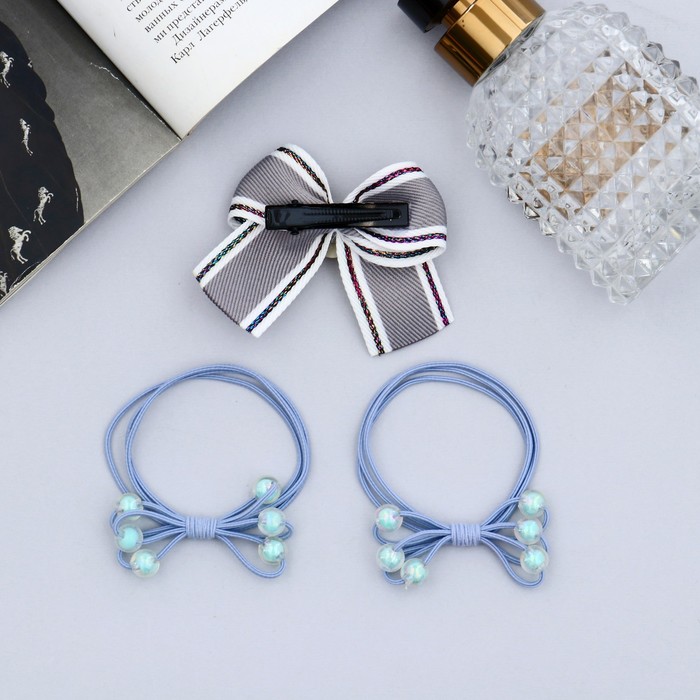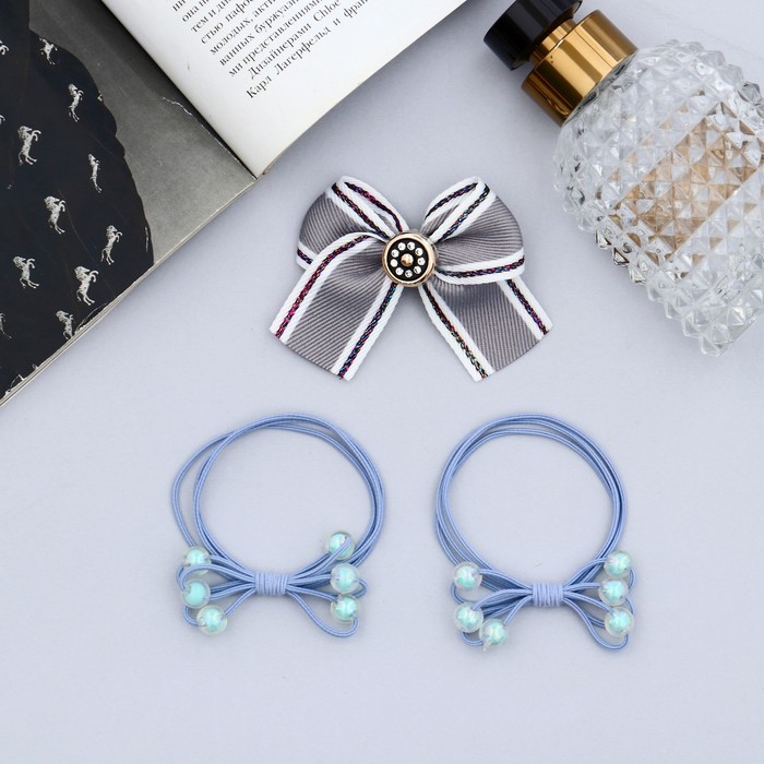 Набор для волос «Кокетка», 3 резинки, 2 зажима, атлас, голубой