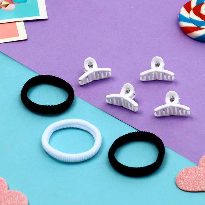 - Элегантный набор из 7 элементов: включает в себя 3 резинки диаметром 5 см и 4 мини-крабика по 2,5 см.