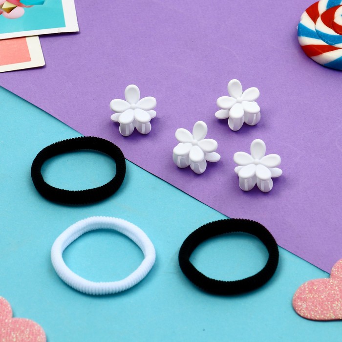 Набор для волос «Галея», 3 резинки 5 см, 4 крабика 2.5 см, ромашка, белый — Характеристики