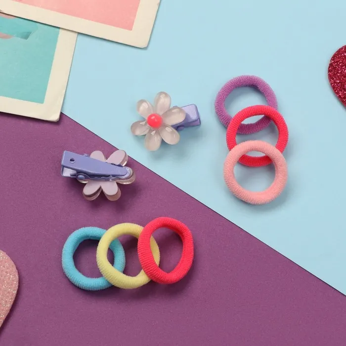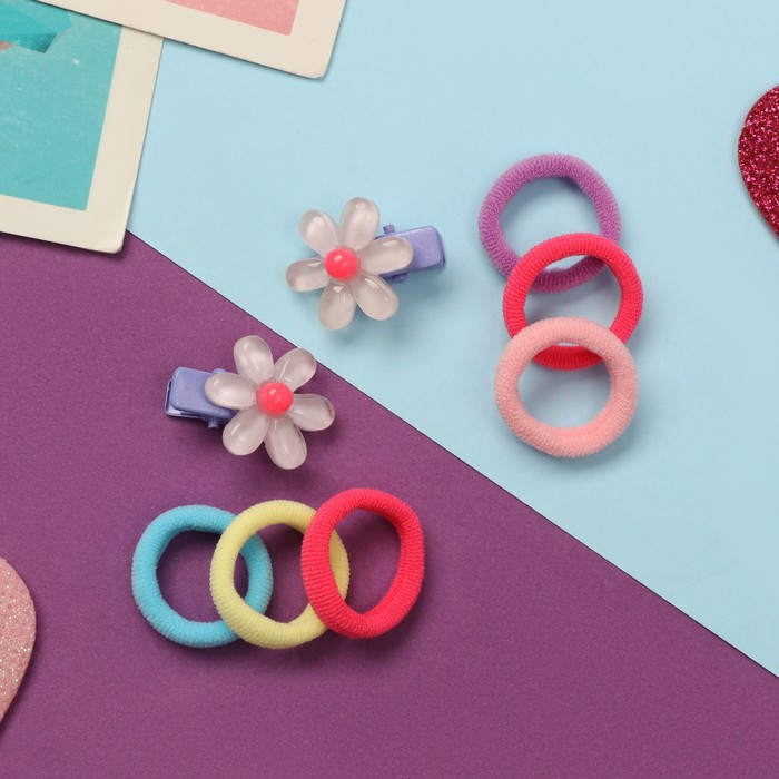 Набор для волос «Карамель», 10 резинок 1.5 см, 2 зажима 2.5 см, ромашки, сиреневый — Характеристики
