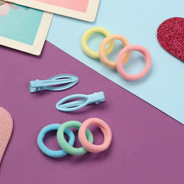 Наш набор для волос «Карамель» — это идеальный спутник юной модницы. Набор представлен в блестящих оттенках голубого и включает 10 резинок и 2 изящных зажима, которые удобны и безопасны в использовании благодаря высококачественным материалам.