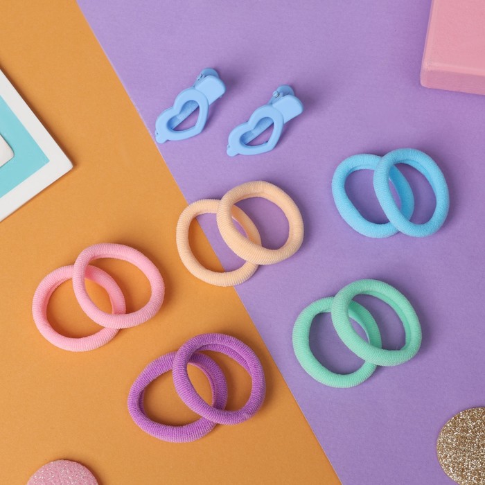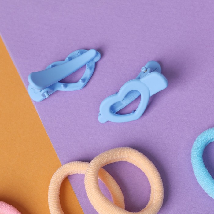 Набор для волос «Карамель», 10 резинок 3 см, 2 зажима 3 см, сердечность, голубой — Характеристики