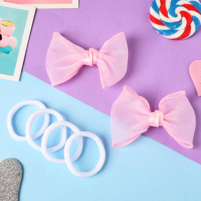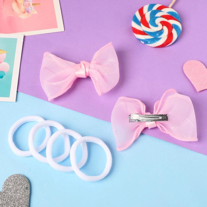 Набор для волос "Карапунька" (4 резинки, 2 зажима) блеск пересечение, 9х7 см, бело-розовый