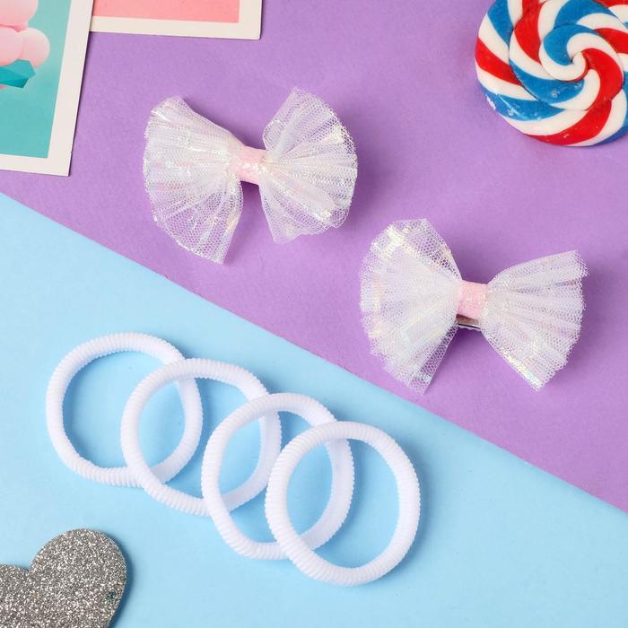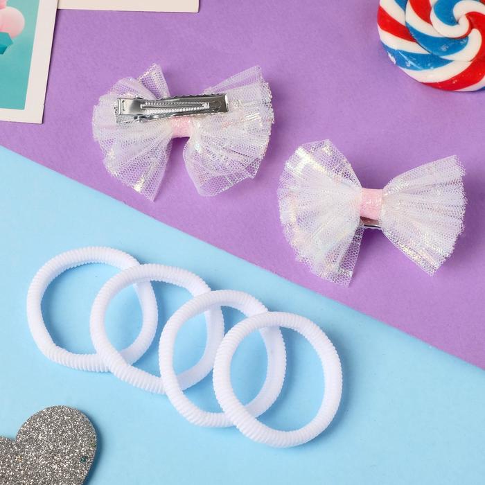 Набор для волос "Карапунька" (4 резинки, 2 зажима) полосы блеск, 6,5х4 см, белый