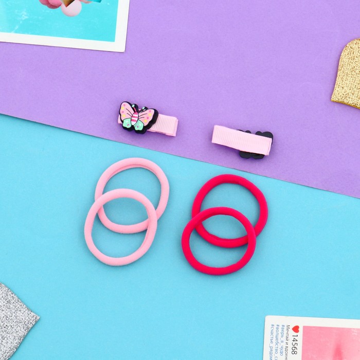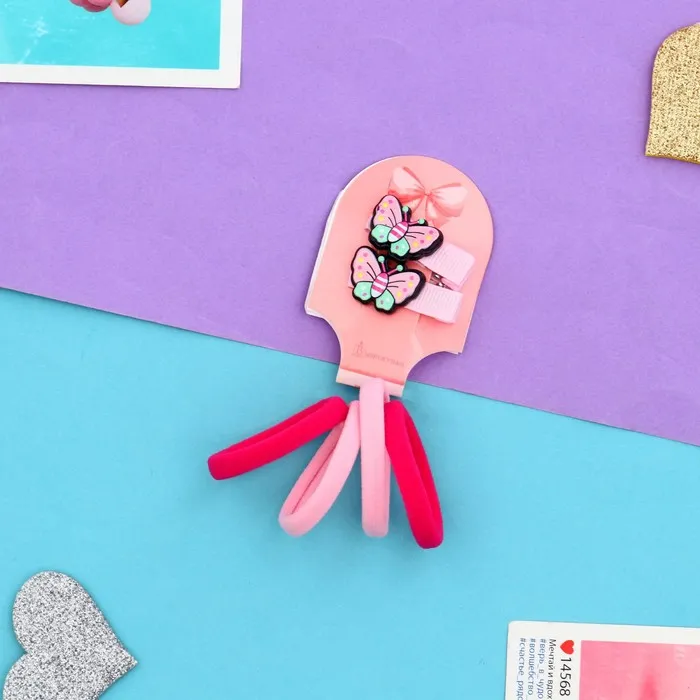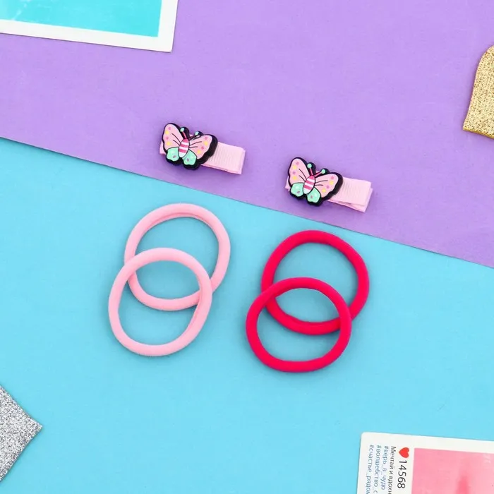 - Фантазия и стиль: комплект включает в себя 4 эластичные резинки и 2 надежных зажима, украшенных очаровательной бабочкой. Эти аксессуары подойдут как для повседневных укладок, так и для создания праздничных причесок, добавляя изюминку в любой образ.
