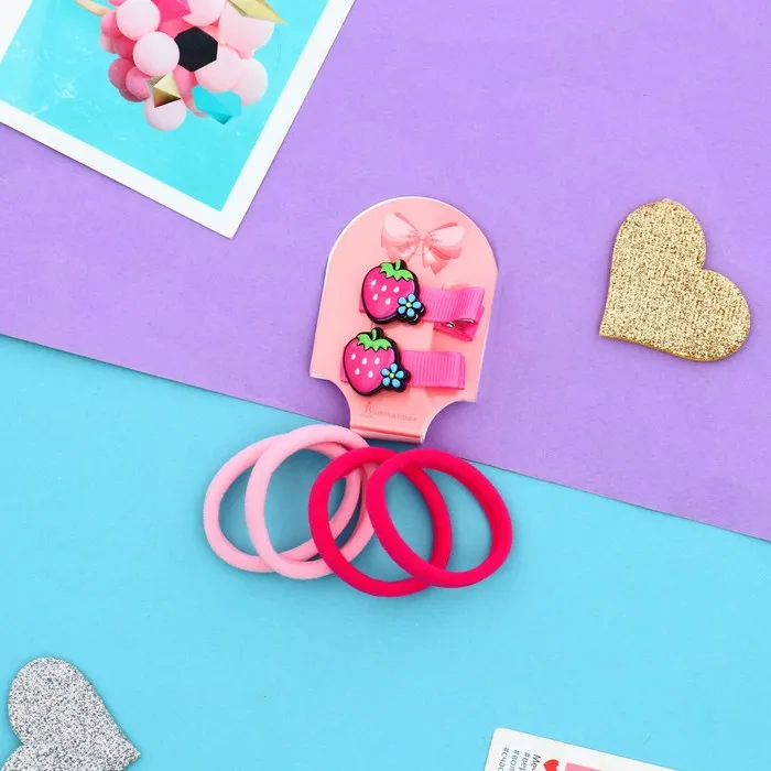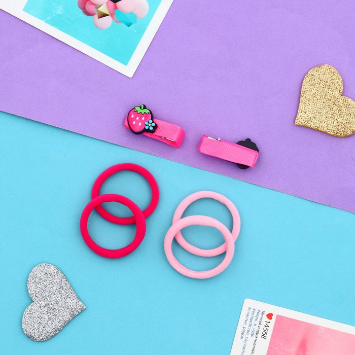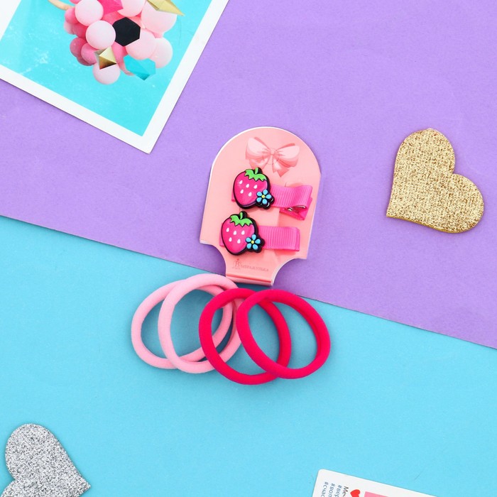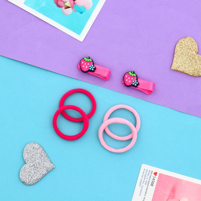 Набор для волос "Крохотуля" (4 резинки, 2 зажима 3,5 см) клубничка, розовый