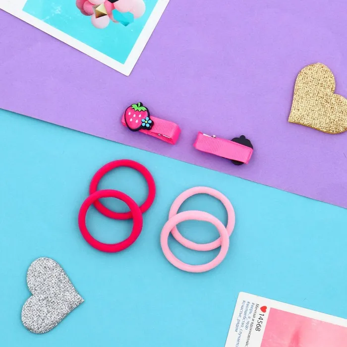 Набор для волос "Крохотуля" (4 резинки, 2 зажима 3,5 см) клубничка, розовый — Характеристики