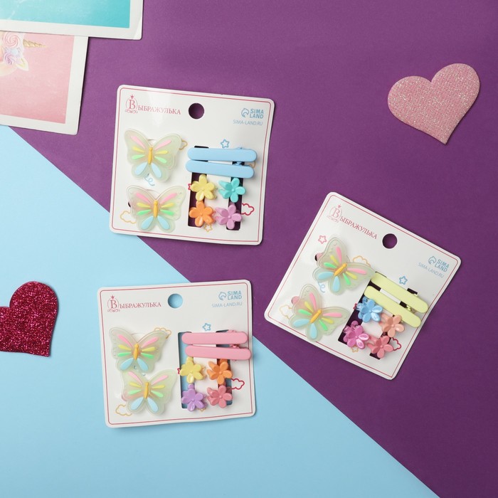 Набор для волос «Крошечка», 2 резинки, 2 зажима, 4 крабика, бабочка яркая — Характеристики