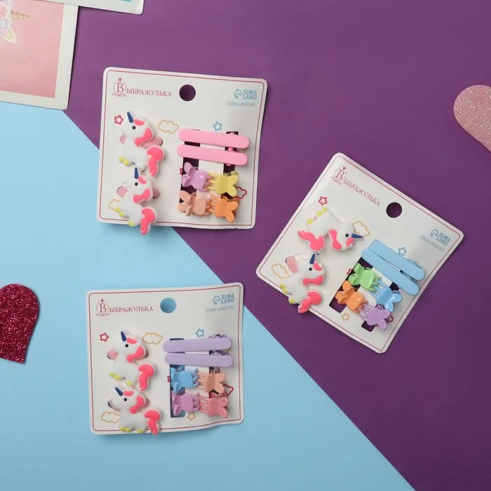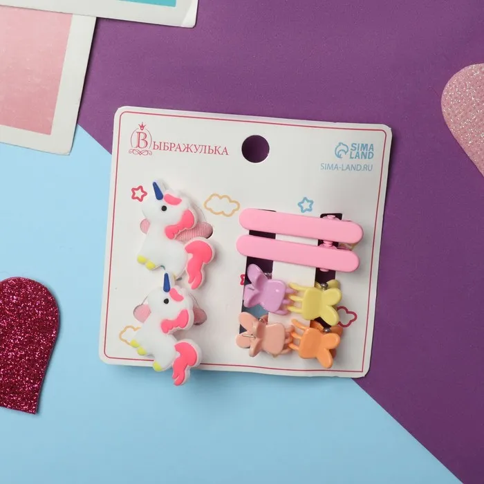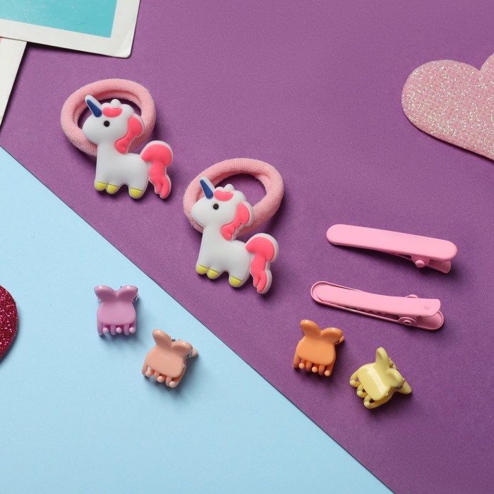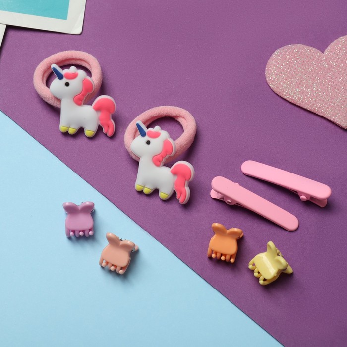 Набор для волос «Крошечка», 2 резинки, 2 зажима, 4 крабика, единорожка волшебный