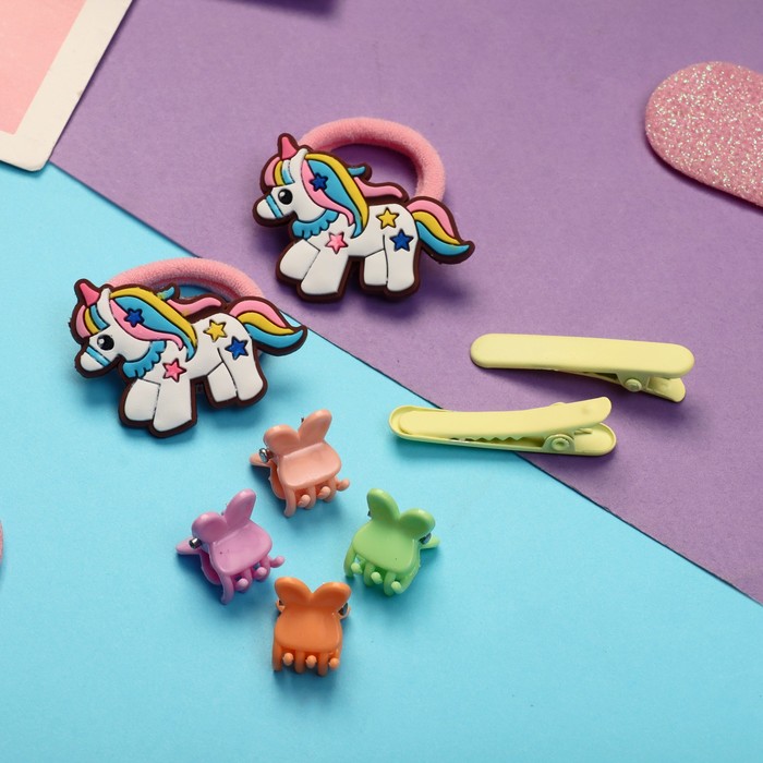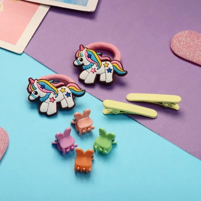 Мир волшебства в каждом аксессуаре! Набор аксессуаров для волос с единорогами и ушками — идеальный выбор для маленьких модниц, мечтающих о магии и уникальности. Этот набор создает стильные образы и вдохновляет на ежедневные приключения.