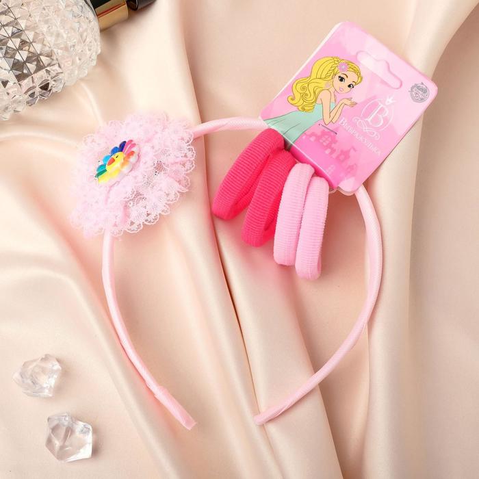 Набор для волос "Лада" (ободок, 4 резинки) солнышко, розовый