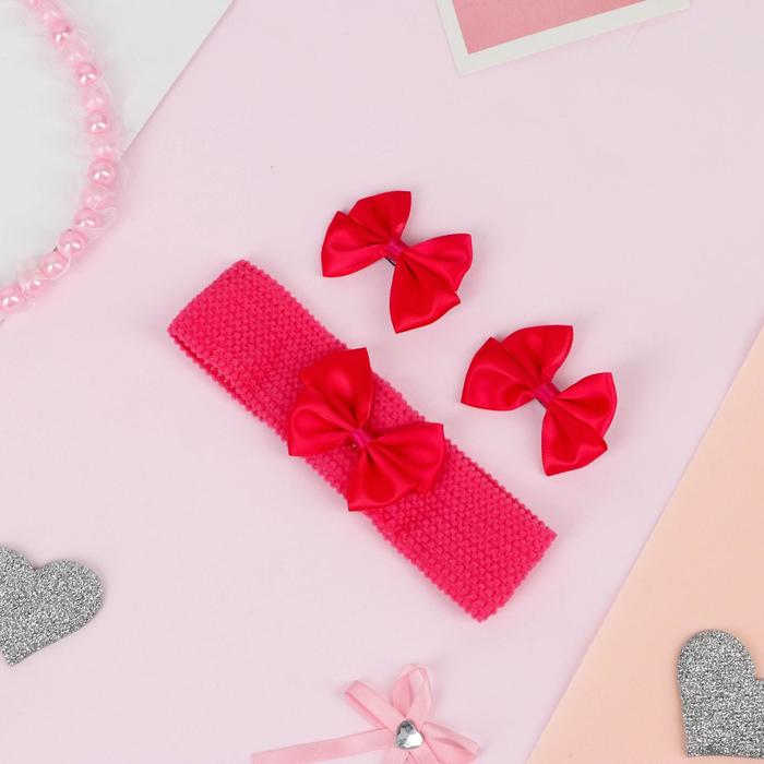 Набор для волос "Лада" (повязка, 2 зажима) классика глянец, малиновый