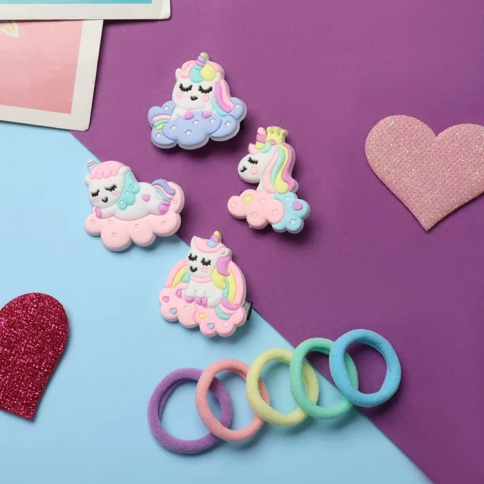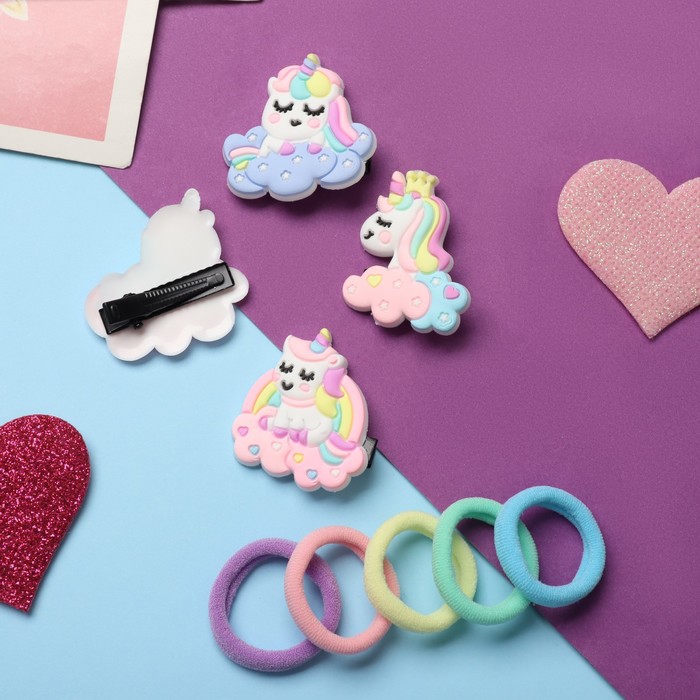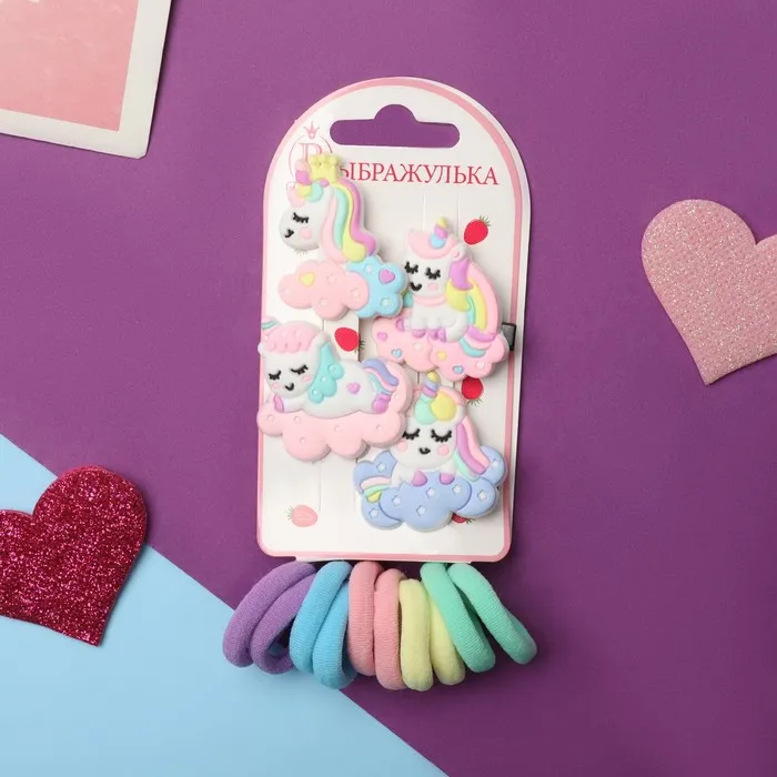 Набор аксессуаров для волос «Лучик» – это яркое решение для маленьких модниц, которые любят создавать разные прически. В комплекте вы найдете все необходимое для ежедневного использования: резинки и зажимы с очаровательным дизайном в виде единорога.