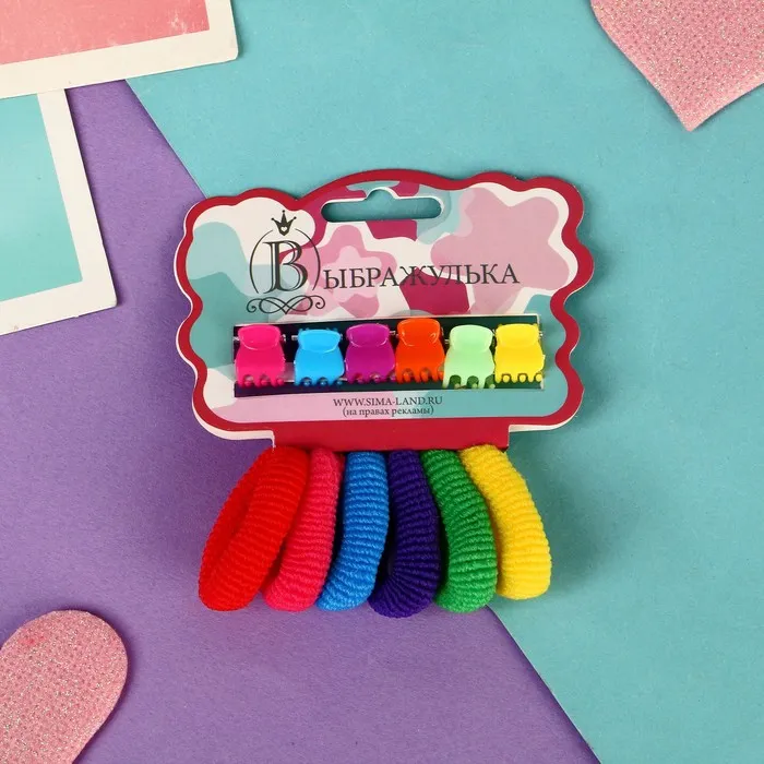 Набор для волос "Махрушка" (6 резинок, 6 крабов) радуга — Характеристики